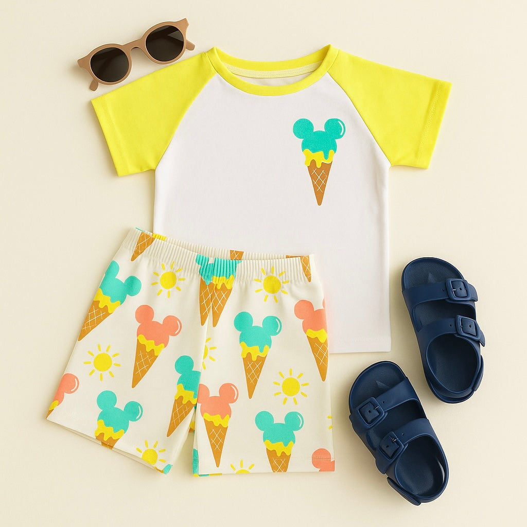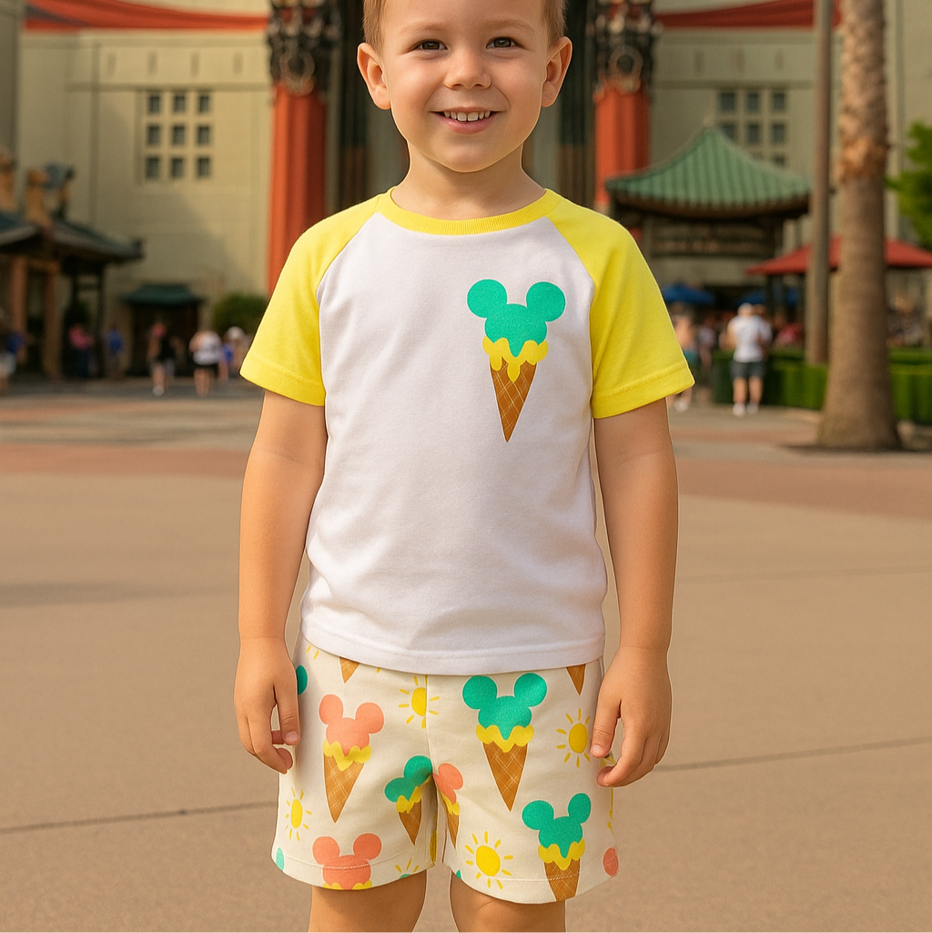 Kids Handcrafted Mouse Ice Cream Neon Top & Optional Bottoms