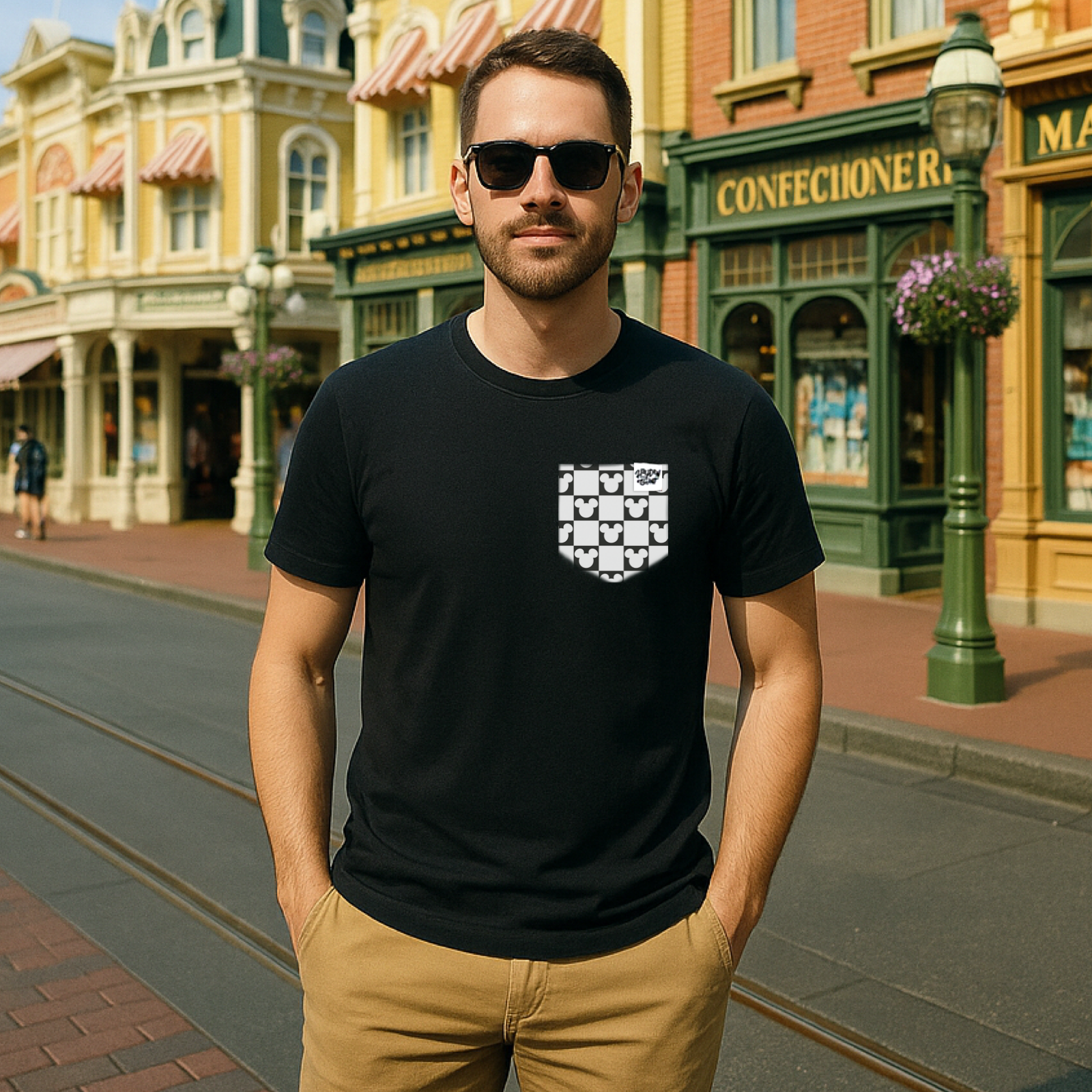 Mouse Checkered Pocket Tee Family Graphic Tee | Black
